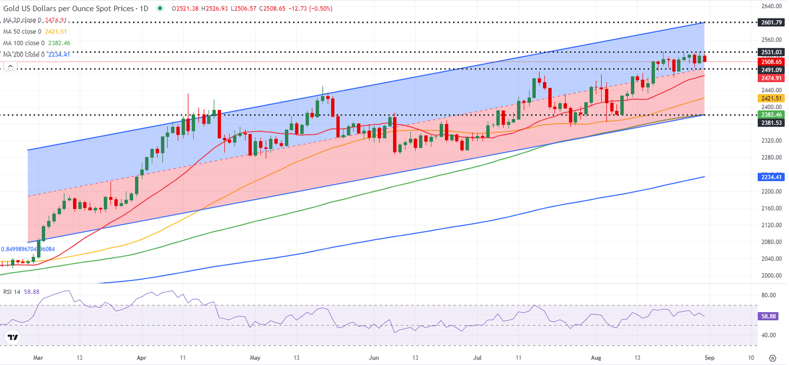 Upbeat macroeconomic data releases from the US helped the USD hold its ground on Thursday. The Bureau of Economic Analysis (BEA) announced that it revised the annualized Gross Domestic Product (GDP) growth for the second quarter higher to 3%, from 2.8% in the previous estimate. Additionally, there were 231,000 first-time applications for unemployment benefits in the week ending August 24, down slightly from 233,000 in the previous week, the Department of Labor reported. Technical Gold sellers stood on the sidelines as $2,500 proved to be a strong support, allowing XAU/USD to ignore the ongoing USD recovery.