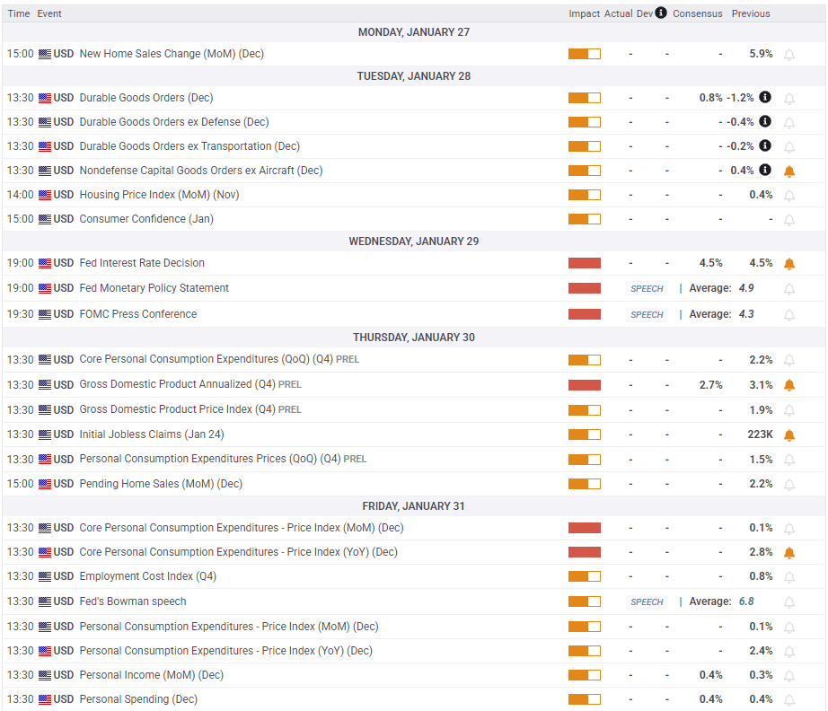 The Federal Reserve (Fed) will conduct its first monetary policy meeting of 2025 next week. According to the CME Group FedWatch Tool, markets see virtually no chance of the Fed opting for a 25 basis points (bps) rate cut. Hence, investors will scrutinize the policy statement and Fed Chairman Jerome Powell’s remarks at the press conference.