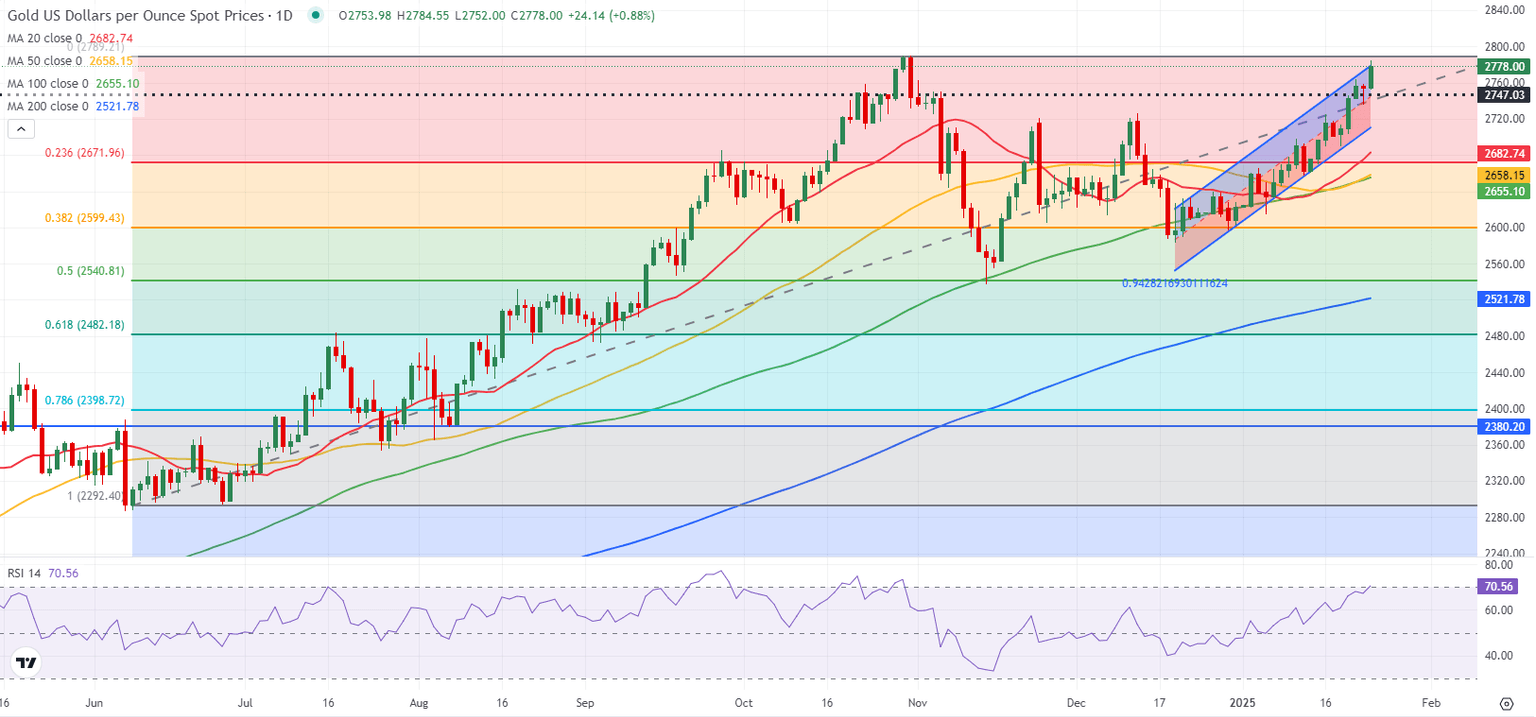After gaining more than 1% on Tuesday, Gold continued to push higher in the absence of high-tier macroeconomic data releases on Wednesday, touching its highest level since late October above $2,760.
