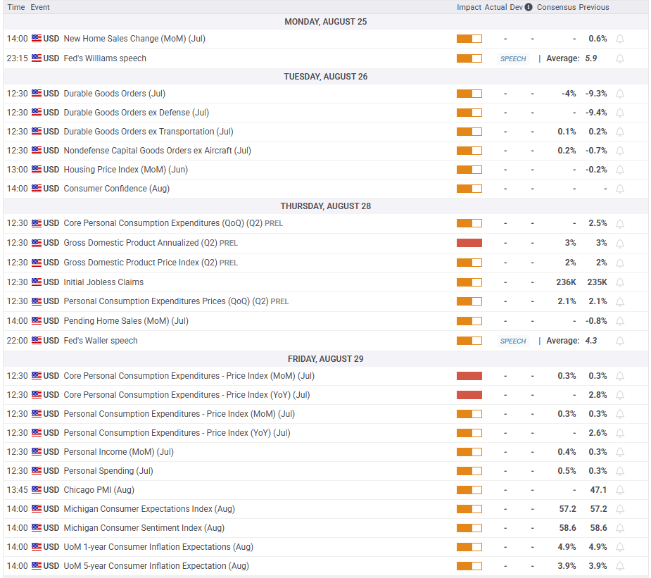 On Friday, the BEA will publish the Personal Consumption Expenditures (PCE) Price Index data, the Fed’s preferred gauge of inflation, for July. In case the monthly core PCE Price Index rises more than expected, investors might refrain from pricing in multiple Fed rate cuts this year. In this scenario, US Treasury bond yields could turn north and Gold could come under renewed bearish pressure. Conversely, a soft print is likely to support the precious metal heading into the weekend.