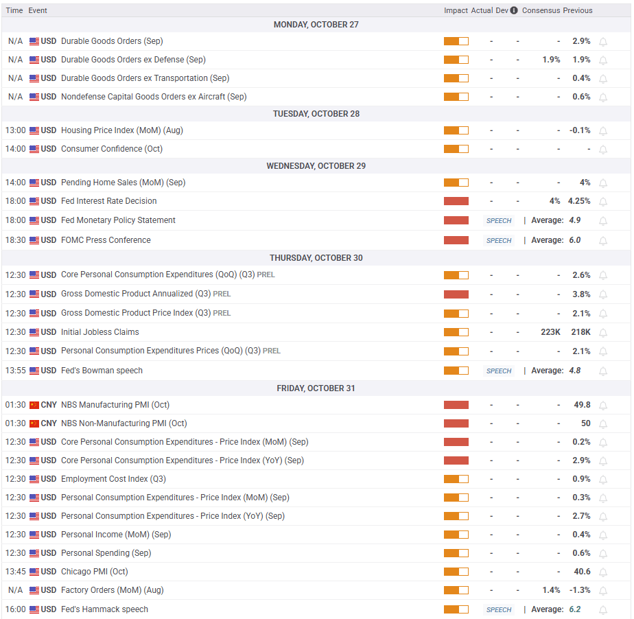 The Asia-Pacific Economic Cooperation (APEC) Forum will be held in South Korea from October 30 to November 1. Chinese President Xi Jinping and US President Trump are expected to meet to discuss trade relations. If sides can avoid an escalation of the conflict by coming to terms on China’s proposed export controls of rare earths and the US’s increased tariff threats, Gold could lose interest as a safe-haven and continue to weaken. Conversely, Gold could start pushing higher if the Xi-Trump meeting is called off or if the sides fail to find a middle ground to extend the trade truce.