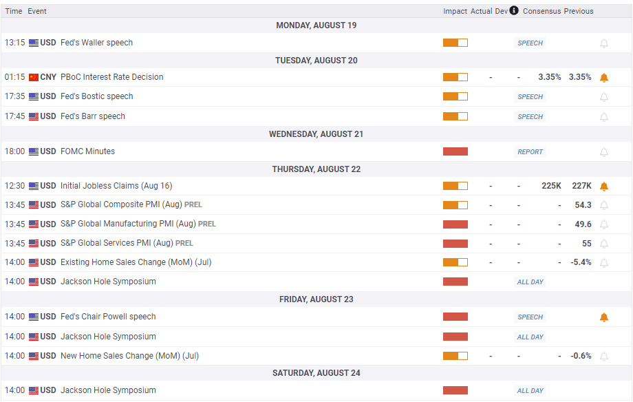 The US economic calendar will not feature any high-tier data releases in the first half of the week. On Wednesday, the Fed will publish the minutes of its July 30-31 meeting. In the post-meeting press conference, Fed Chairman Jerome Powell acknowledged that there was a “real discussion” about cutting the policy rate at the July meeting. Investors will scrutinize remarks surrounding the rate cut discussions. In case the publication shows that several policymakers advocated for a surprise rate cut in July, the USD could come under renewed selling pressure.
