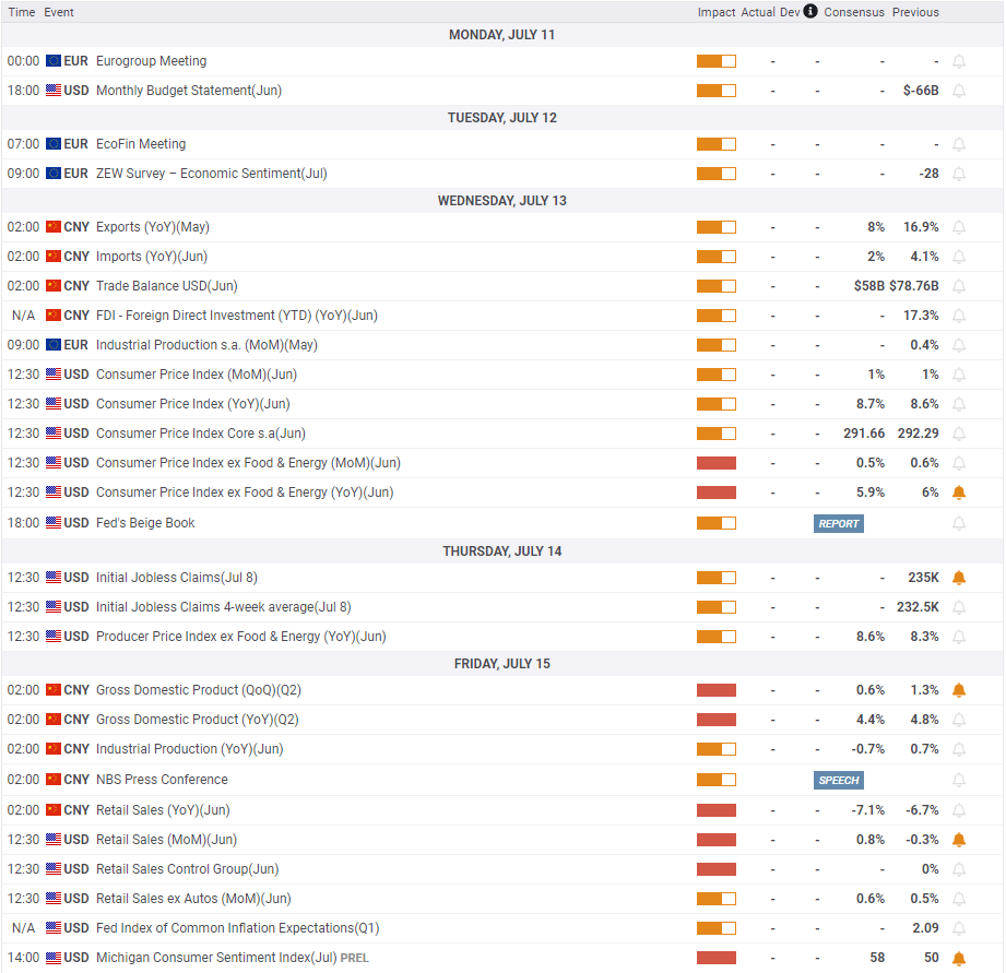 On Wednesday, the BLS will release the Consumer Price Index (CPI) data for June. Markets expect annual CPI to edge higher to 8.7% from 8.6% in May. Core CPI, which excludes volatile food and energy prices, is forecast to decline to 5.9% from 6%. As it currently stands, markets are nearly fully pricing in a 75 basis points (bps) rate hike in July and inflation figures are unlikely to change that. According to the CME Group’s FedWatch Tool, there is only a 30% probability of one more 75 bps rate increase in September. Hence, there is room for additional dollar strength in case inflation prints surpass analysts’ estimates. On the other hand, a soft inflation report should trigger a downward correction in the greenback and allow XAUUSD to stage a rebound.