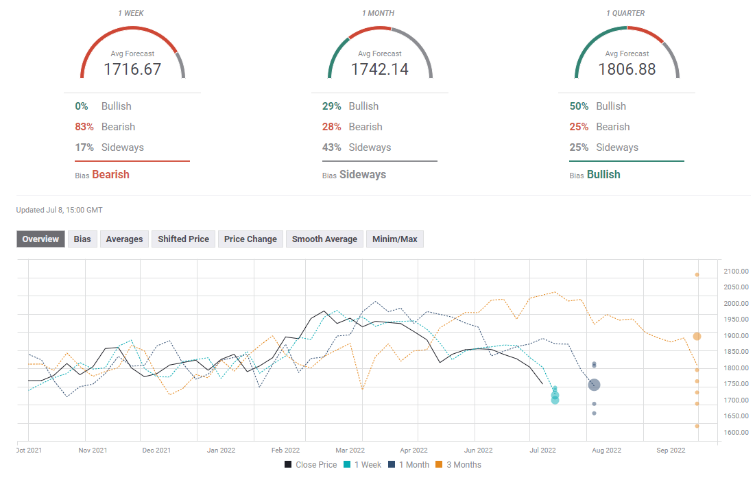 FXStreet Forecast Poll shows that experts remain overwhelmingly bearish on gold in the short term with the average target on the one-week view sitting at $1,716.