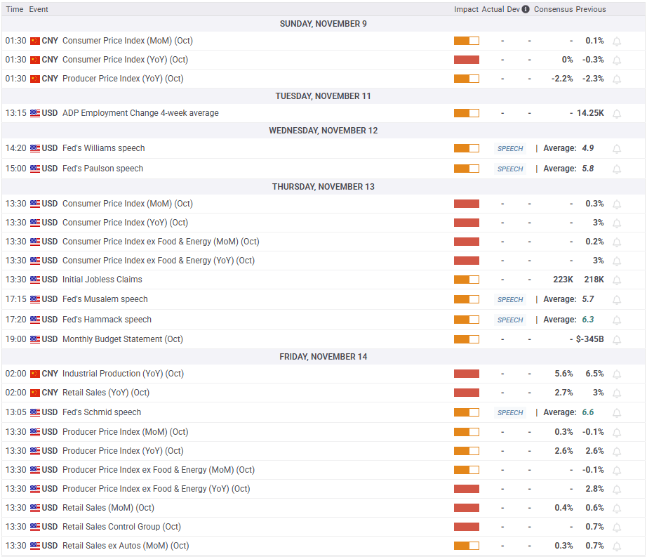 As there are no developments suggesting that the US government shutdown will soon end, it’s safe to assume that upcoming economic data releases, such as the Consumer Price Index (CPI), Retail Sales and Producer Price Index (PPI) for October, will be postponed. Even if the government reopens, it’s unlikely that the data will be published on their originally scheduled dates due to the backlog.
