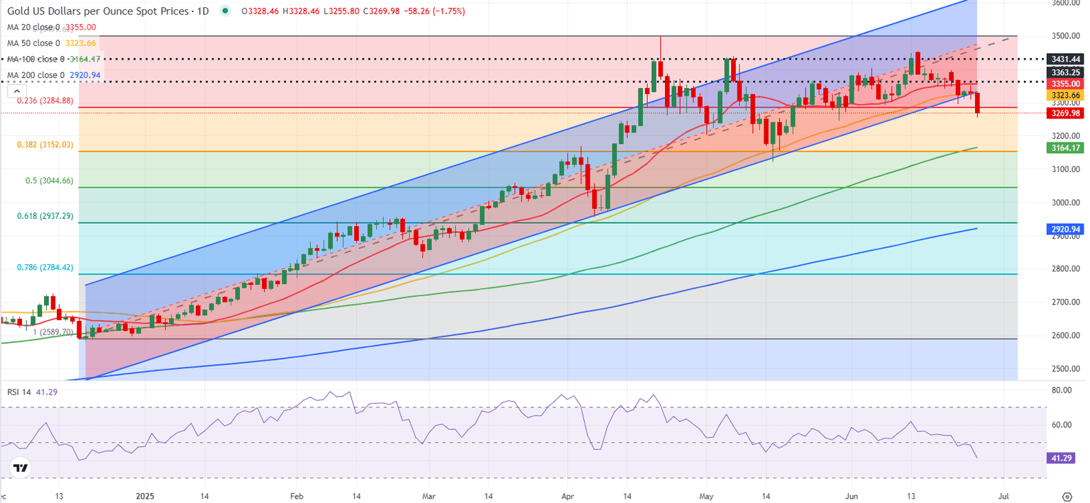 Gold (XAU/USD) came strong under selling pressure and fell below $3,300 as geopolitical tensions in the Middle East eased. The technical outlook reflects a bearish bias in the near term as investors gear up for June employment data from the US.