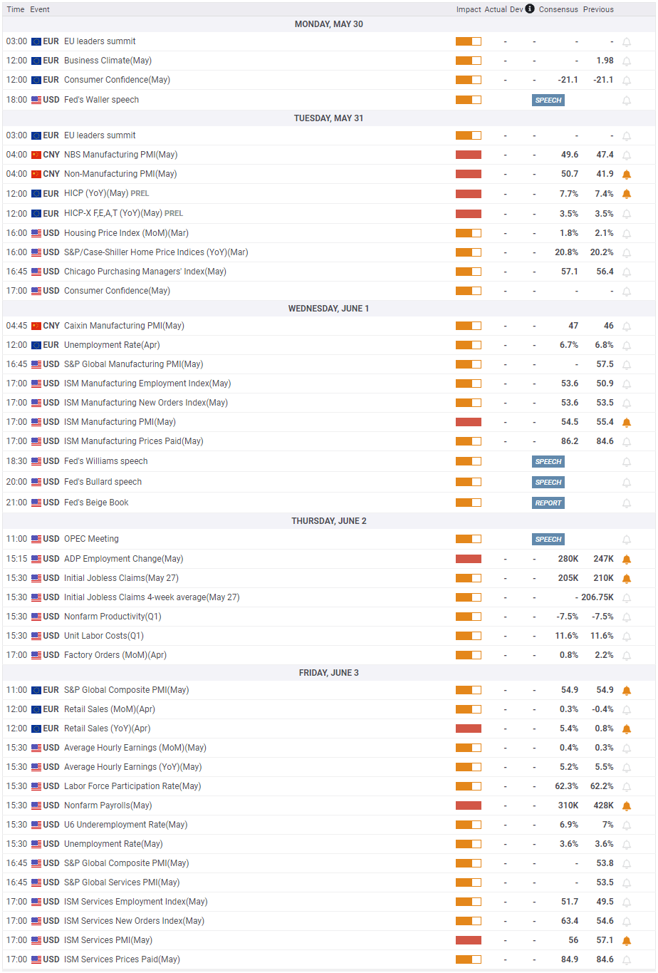 The US Bureau of Labor Statistics will publish the May jobs report on Friday. Nonfarm Payrolls (NFP) are expected to rise by 310,000 following April’s increase of 428,000. Unless the NFP print offers a big surprise in either direction, the wage inflation component of the report should impact the market action. The Average Hourly Earnings are forecast to rise by 5.6% on a yearly basis in May. Strong wage inflation could be seen as a factor that can cause consumer inflation to remain high for longer-than-expected and remind investors of the Fed’s willingness to tighten its policy aggressively. In that scenario, gold could turn south amid a rebound in US T-bond yields.