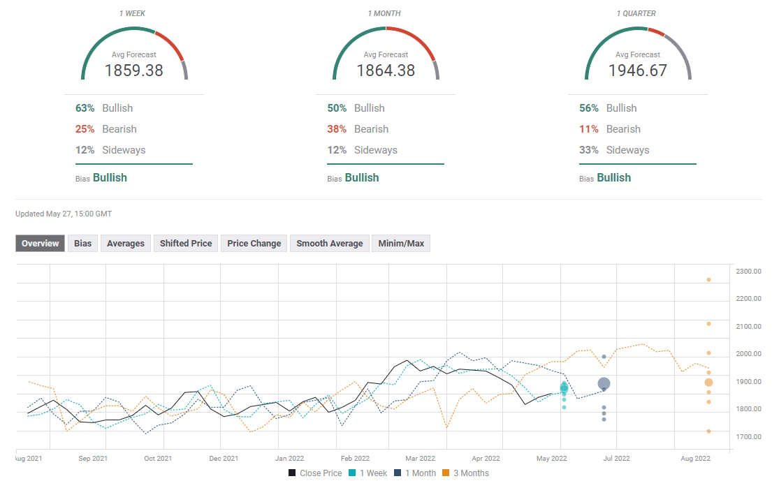 FXStreet Forecast Poll shows that the majority of experts see gold continuing to edge higher next week. The one-month outlook paints a mixed picture and the average target of $1,864 highlights the lack of consensus among analysts.