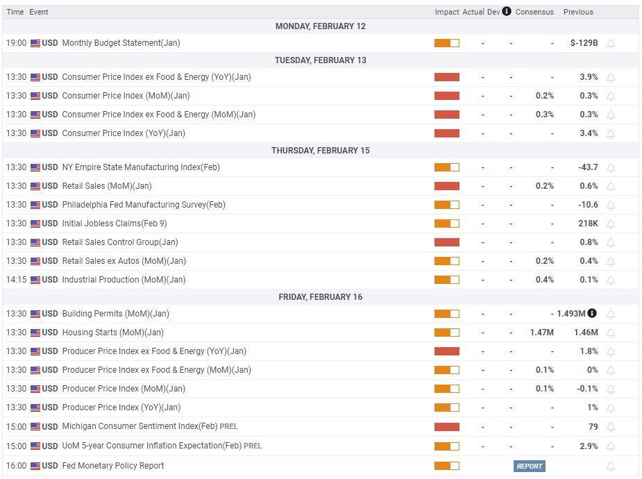The BLS will release January inflation data on Tuesday. On a monthly basis, the CPI and the core CPI, which excludes volatile food and energy prices, are forecast to rise 0.2% and 0.3%, respectively. It will take a significant downward surprise in monthly CPI readings, at or below 0%, for market participants to reconsider the probability of a Fed rate cut in March. In this scenario, the 10-year US T-bond yield could retreat below 4% and help XAU/USD gather bullish momentum.