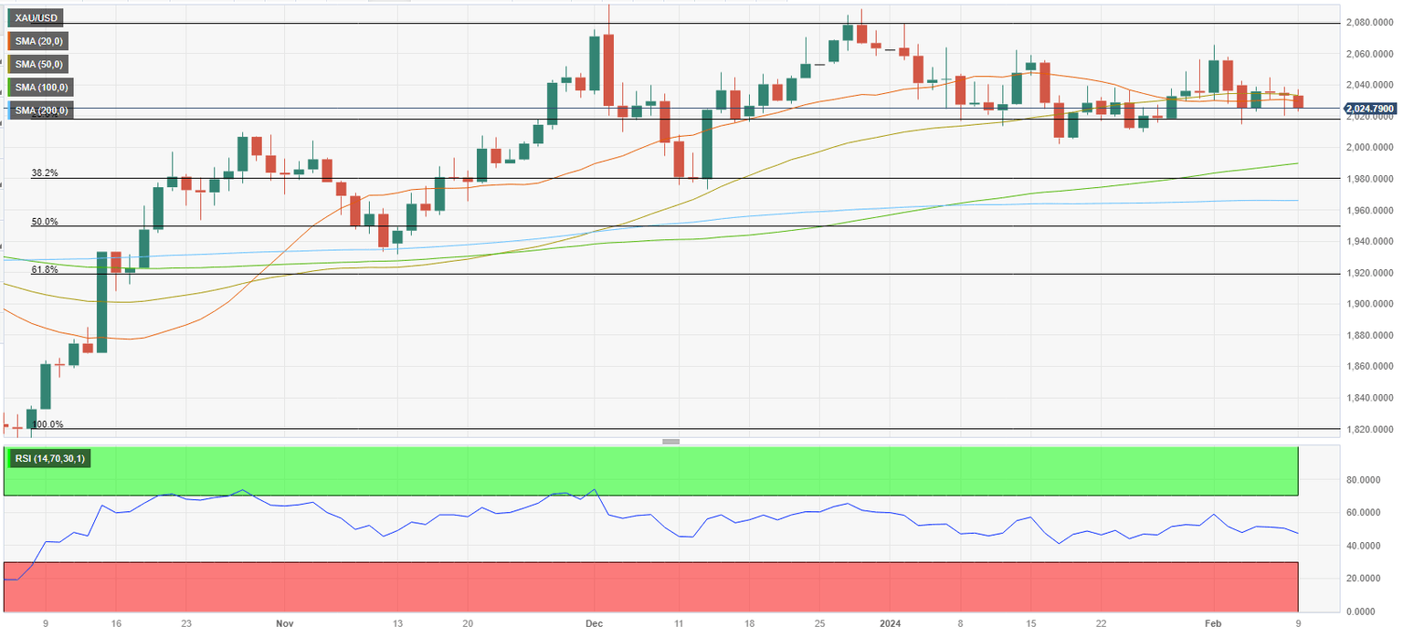 In a televised interview with CBS News’s 60 Minutes on Sunday, Federal Reserve (Fed) Chairman Powell repeated that the March policy meeting was likely too soon to have the confidence to start cutting rates. He also reiterated that they could move sooner if they saw labor market weakness or inflation coming down persuasively. The benchmark 10-year US Treasury Note yield extended the rally that was fuelled by the impressive jobs report and rose more than 3% on Monday, causing Gold to end the day in negative territory near $2,020.