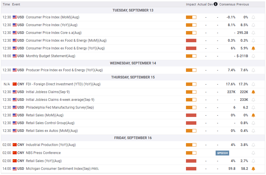 The US Bureau of Labor Statistics will release the Consumer Price Index (CPI) data for August on Tuesday. On a monthly basis, the CPI is expected to decline by 0.1%. The Core CPI, which excludes volatile food and energy prices, is forecast to stay unchanged at 0.3%. FOMC policymakers refrained from confirming a 75 bps rate hike in September and a soft inflation report could cause the probability of a 50 bps rate increase to rise. In that scenario, US T-bond yields are likely to fall sharply and trigger a decisive rally in gold. On the flip side, stronger-than-expected CPI prints could cement a 75 bps rate hike and not allow XAU/USD to turn north. It’s worth noting, however, that markets are already leaning toward an oversized hike, suggesting that the dollar’s potential gains could remain limited.