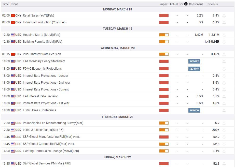 - The Fed will announce policy decisions and publish the dot plot next week.