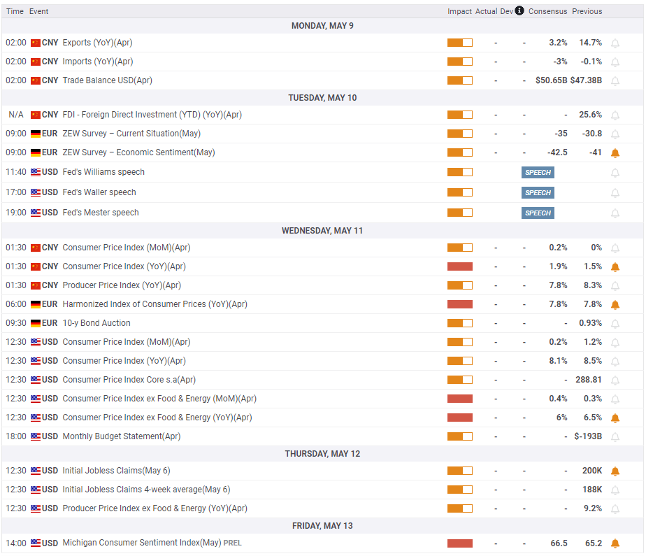 On Wednesday, the US Bureau of Labor Statistics will publish the April Consumer Price Index (CPI) data. On a yearly basis, CPI is expected to edge lower to 8.4% from 8.5% in March. The Core CPI, which excludes volatile food and energy prices, is forecast to fall sharply to 6% from 6.5%.