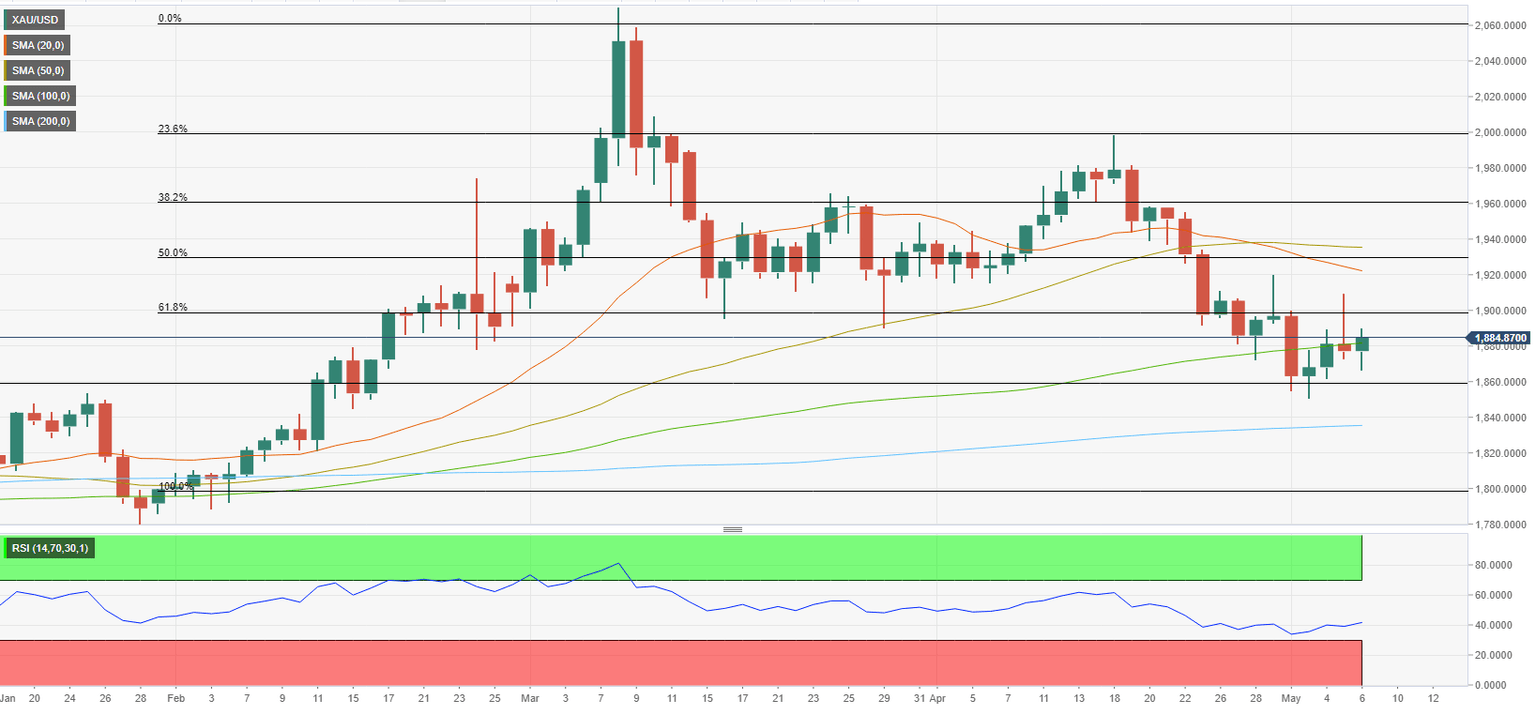 The US jobs report revealed on Friday that Nonfarm Payrolls rose by 428,000 in April, compared to the market expectation of 391,000. Underlying details of the publication showed that the Labor Force Participation Rate declined to 62.2% from 62.4% in March and the annual wage inflation, as measured by the Average Hourly Earnings, stayed virtually unchanged at 5.5%. With these figures confirming tight labor market conditions, the 10-year US T-bond yield climbed to its strongest level since November 2018 above 3.1%, forcing gold to lose its recovery momentum ahead of the weekend.