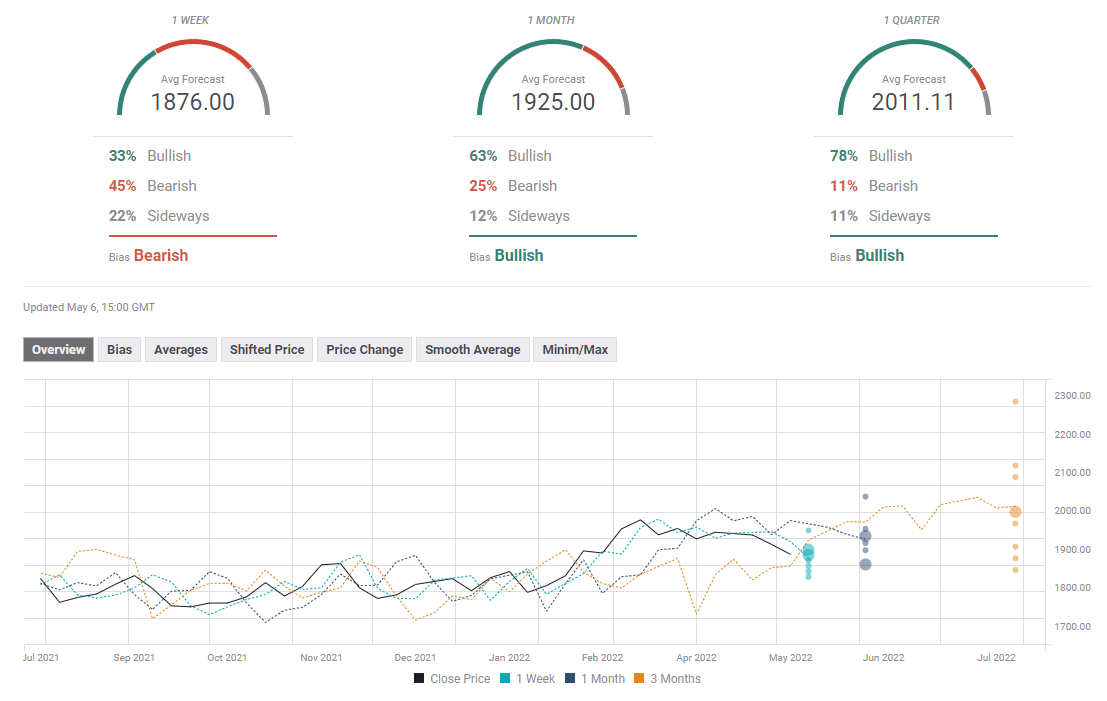 The FXStreet Forecast Poll shows that almost half of polled experts see gold edging lower next week. The one-month outlook, however, points to a bullish shift with the average target sitting at $1,925.