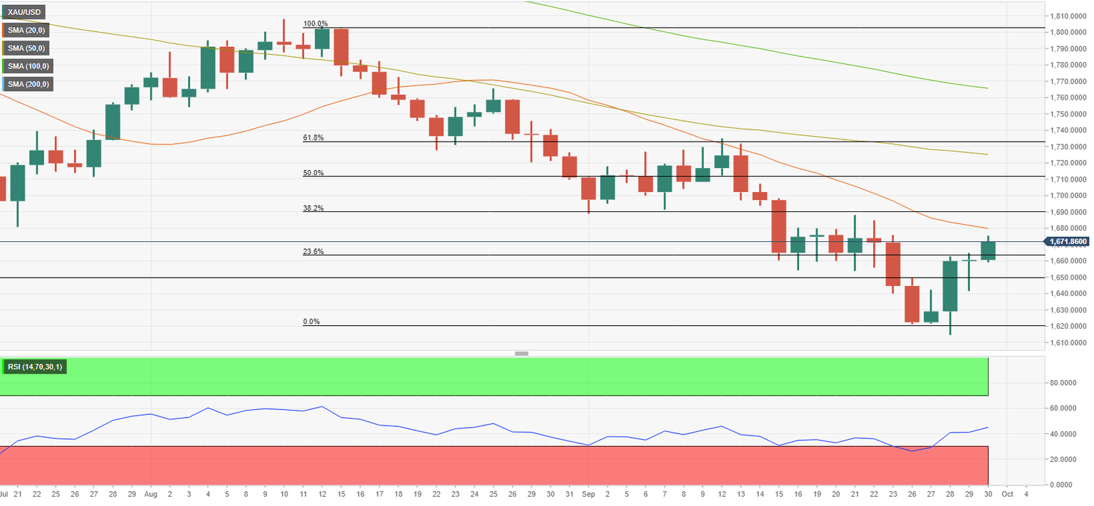 - XAU/USD could gather bullish momentum if it manages to clear $1,680.