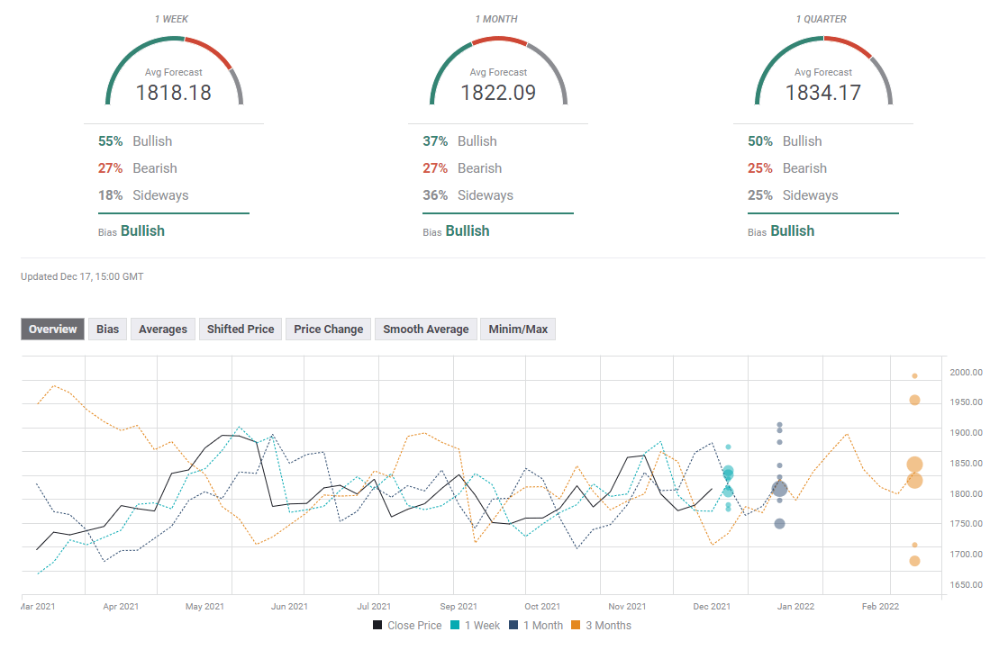 The FXStreet Poll also points to a bullish shift in the near term but suggests that gains could remain limited. The average targets for the one-week and one-month views align at $1,818 and $1,822, respectively.