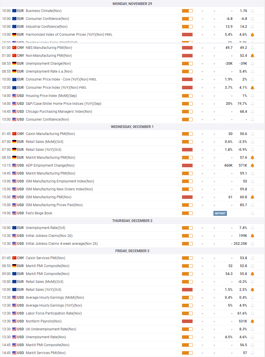 The ADP Employment Change and the ISM Manufacturing PMI on Wednesday will be looked upon for fresh impetus ahead of Friday’s November jobs report. Although a better-than-expected increase in Nonfarm Payrolls could provide a boost to the dollar, the market reaction could remain limited unless vaccine producers reassure markets that they will be able to handle the new variant.