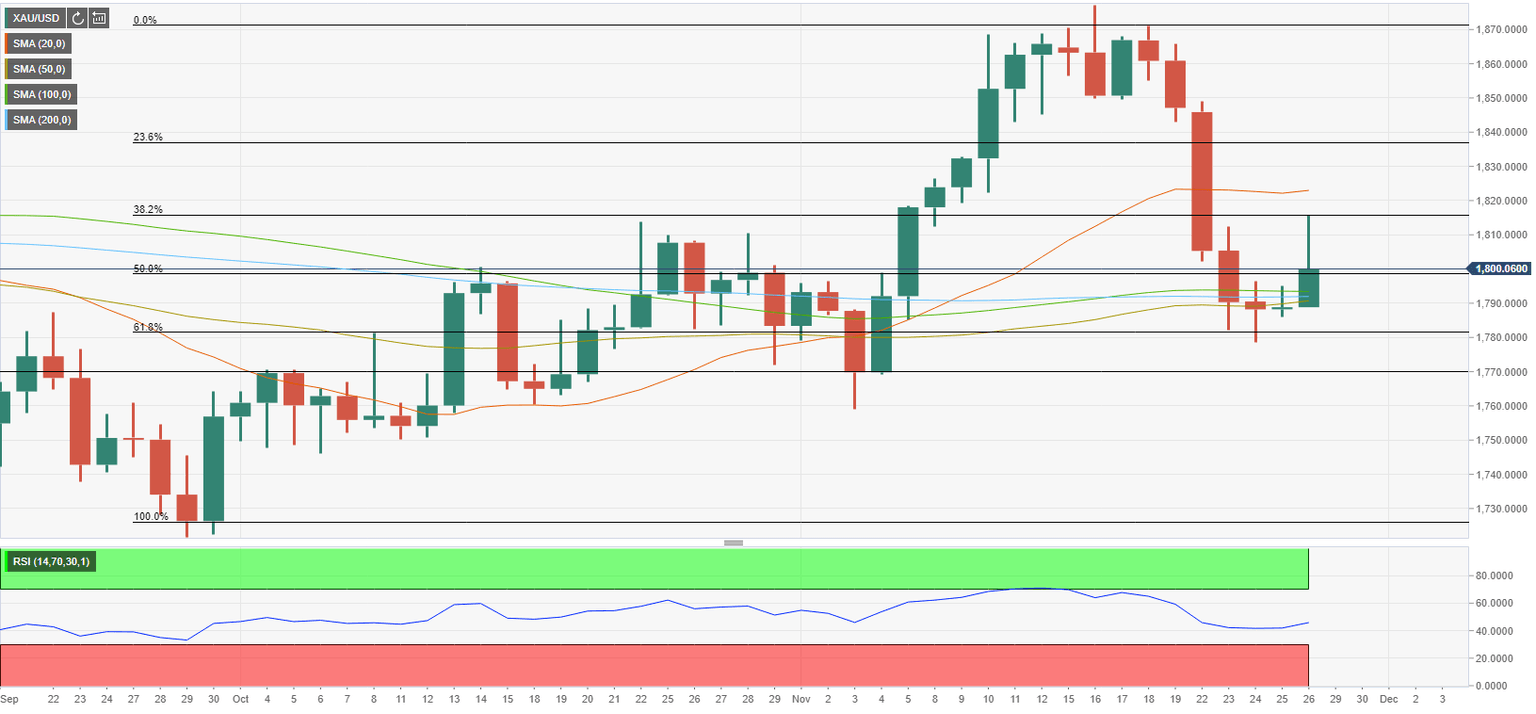 The US Bureau of Economic Analysis reported on Wednesday that the Core Personal Consumption Expenditures (PCE) Price Index climbed to 4.1% on a yearly basis in October from 3.7%. Ahead of the Thanksgiving break, the dollar preserved its strength and didn’t allow XAU/USD to erase its losses. In the meantime, San Francisco Fed President Mary Daly said that there was a case for the Fed to speed up the asset tapering while noting that she wouldn’t be surprised if the Fed were to hike the policy rate twice next year.