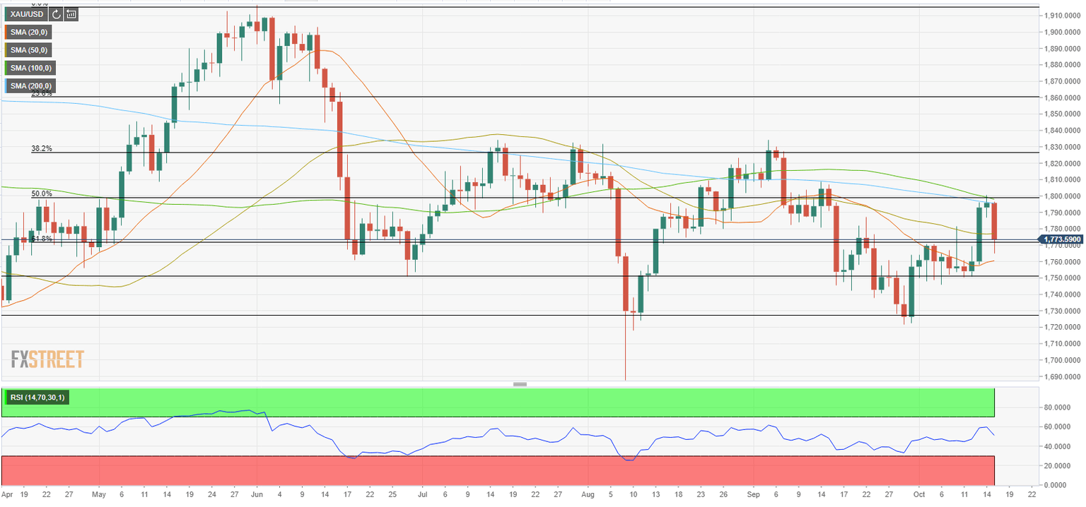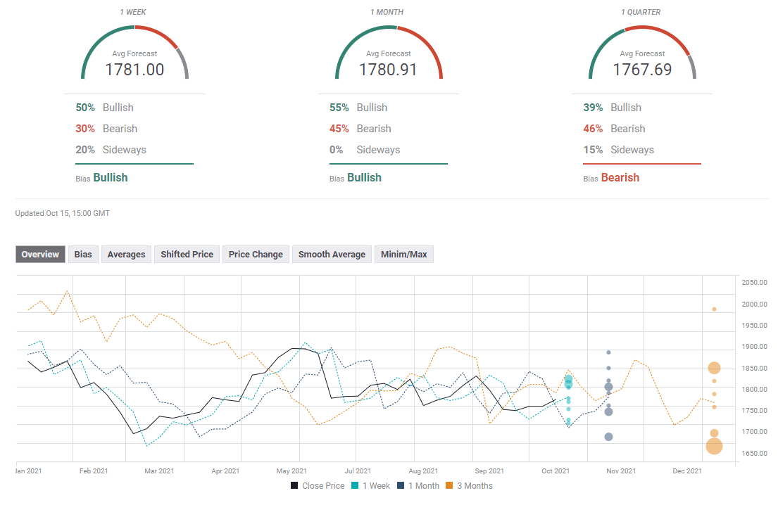 The FXStreet Forecast poll shows that experts expect gold to edge slightly higher in the near term with the average target on the one-week view pointing to $1,781. The one-month outlook paints a mixed picture and the one-quarter outlook doesn't highlight a decisive move in either direction.