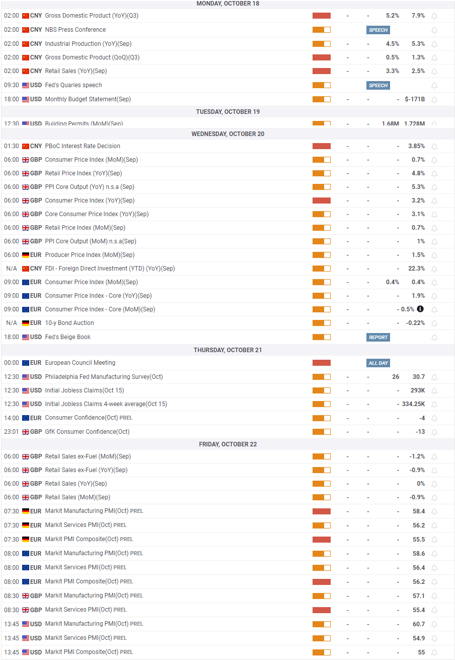 Third-quarter Gross Domestic Product (GDP) data from China will be looked upon for fresh impetus at the beginning of the week. Investors expect the Chinese economy to grow by 5.2% on a yearly basis after expanding by 7.9% in the second quarter. September Retail Sales and Industrial Production data will be featured in the Chinese economic docket as well. In case these prints point to a considerable slowdown in the world’s second-biggest economy, safe-haven flows could dominate the markets and help the dollar keep a firm footing and vice versa.