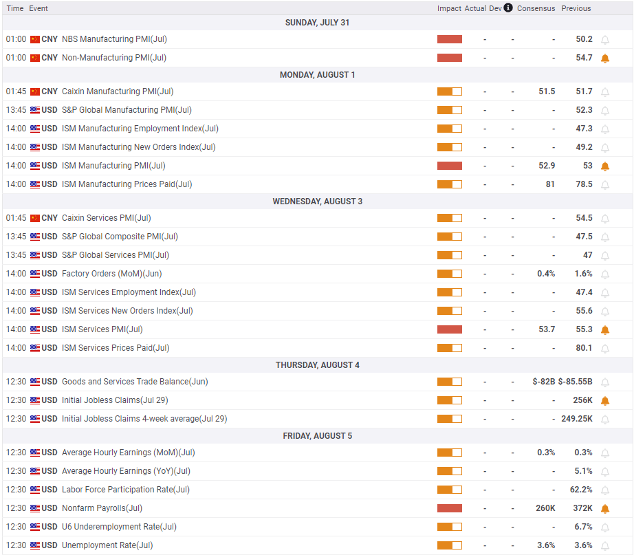 Finally, the US Bureau of Labor Statistics will publish the July jobs report on Friday. Nonfarm Payrolls (NFP) are expected to rise by 260,000 following June’s better-than-forecast increase of 372,000. The Unemployment Rate is seen to remain steady at 3.6%.