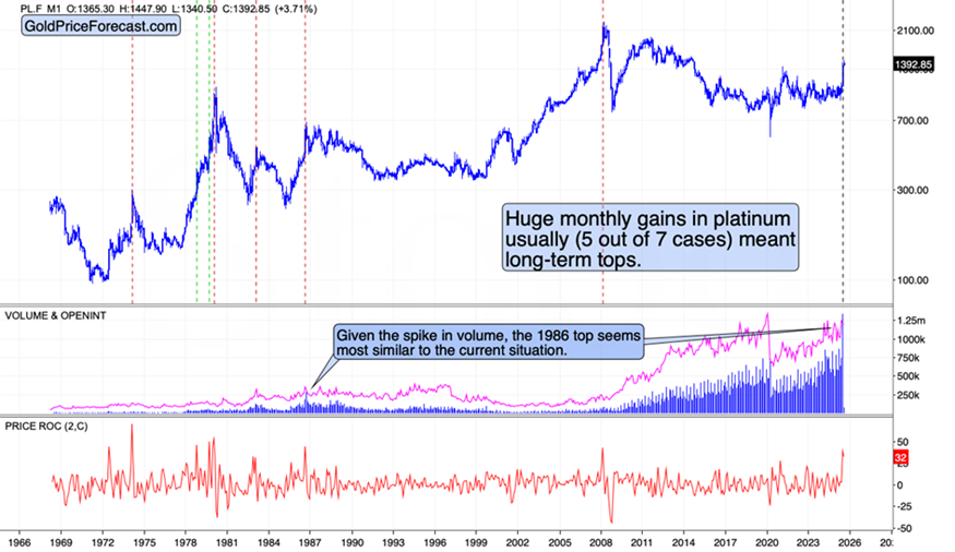 (…), I’d like to show you a very long-term chart featuring platinum itself. The data goes back to the late 1960s.