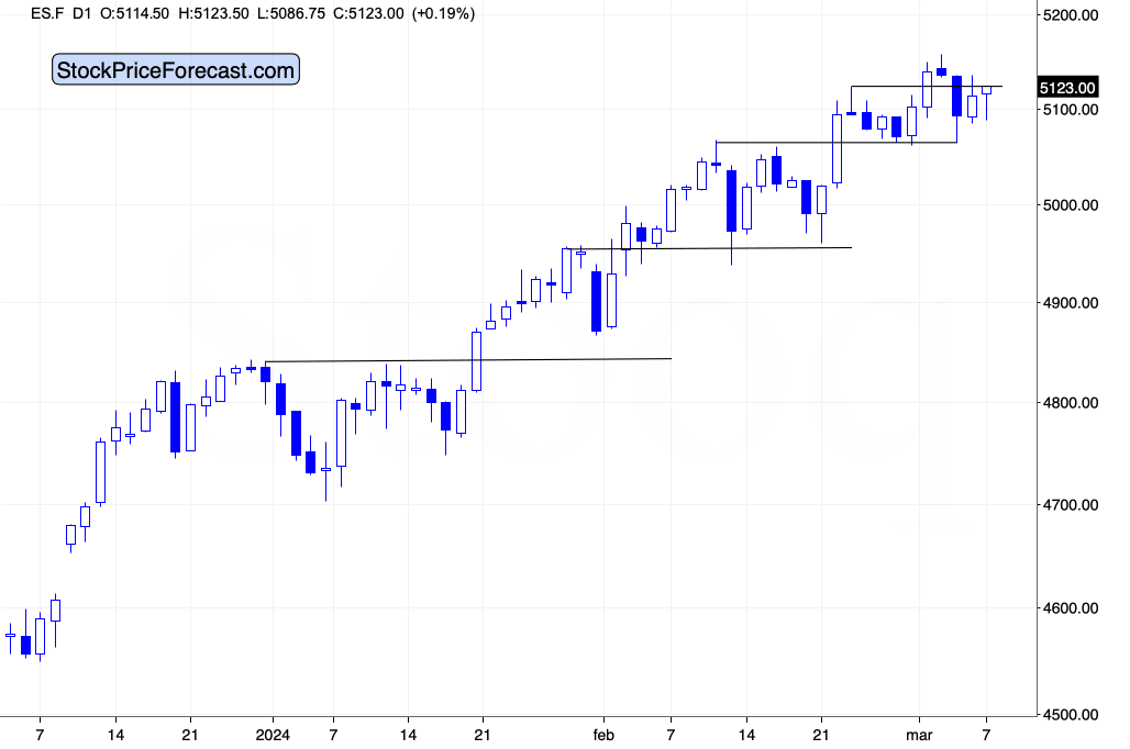 Gold is already after a confirmed breakout to new highs. Yesterday was the fourth consecutive daily close above the late-2023 highs (I marked the early-December one, but it was also the case with the late-December one).