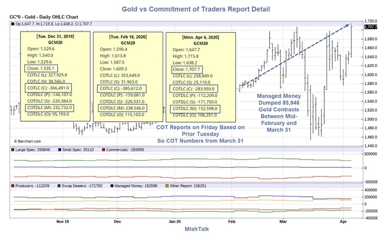 Note that the Managed Money crowd (hedge funds etc.) were long 232,732 contracts at the end of December with the price of gold at roughly $1500.