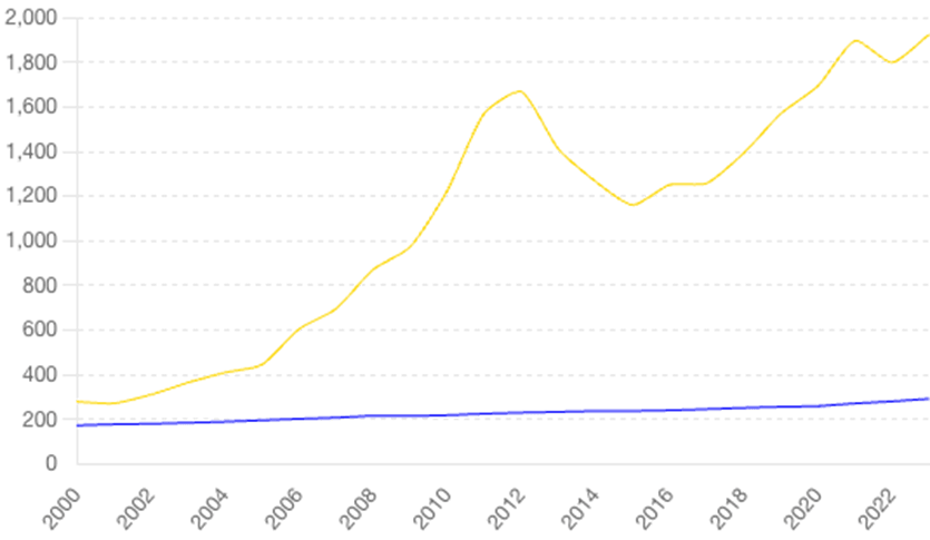 The price of gold has increased by about 29 percent since June 2021 (as inflation started heating up) from around $1,800 an ounce to today’s price of around $2,320 an ounce. In that same period, CPI increased by 12.30 percent based on official Bureau of Labor Statistics data.