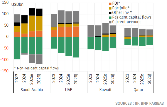 GULF COUNTRIES: RISING NON-RESIDENT CAPITAL FLOWS OFFSET THE EROSION OF CURRENT ACCOUNT SURPLUSES