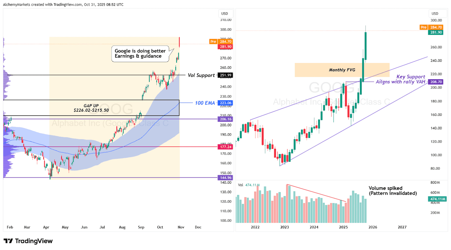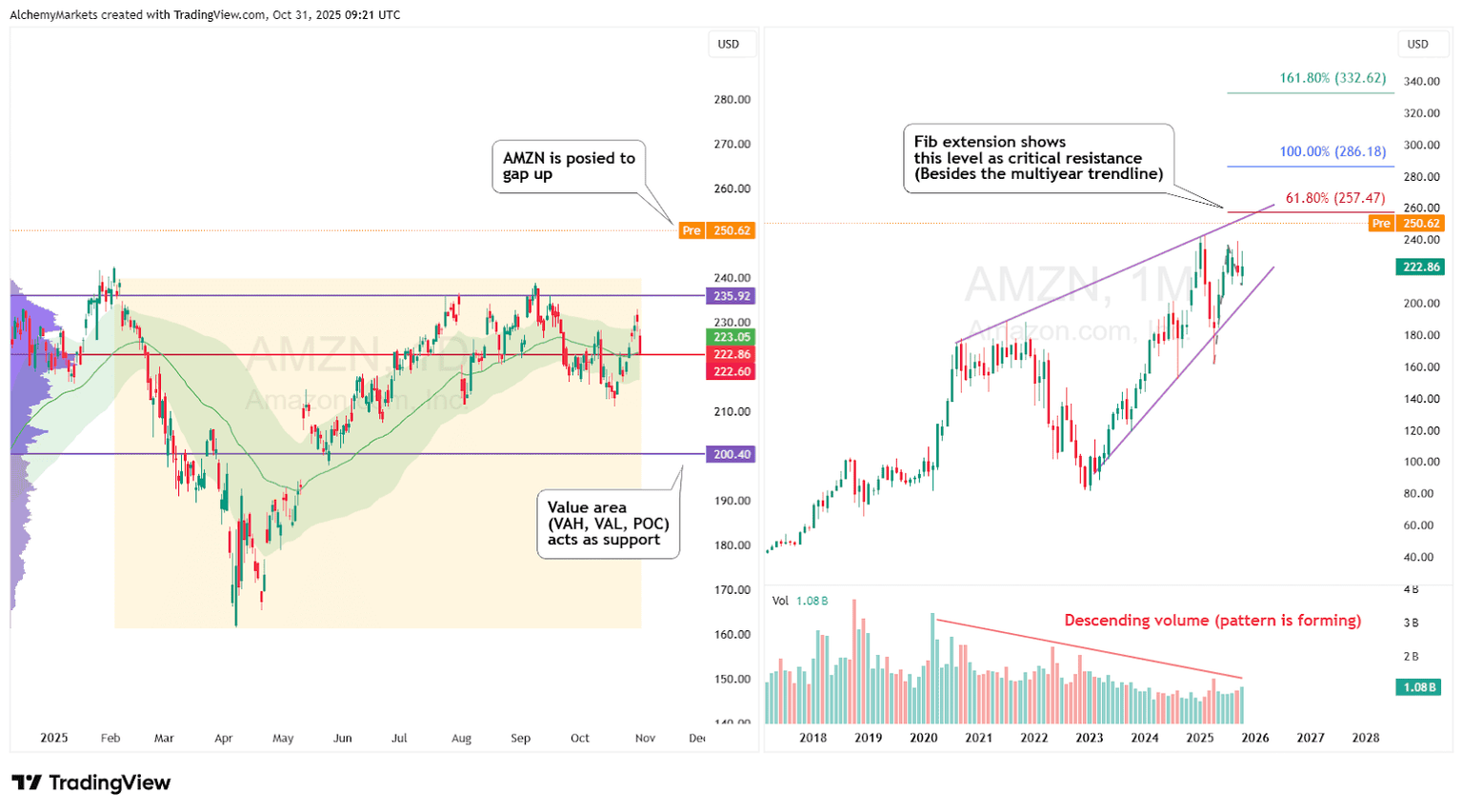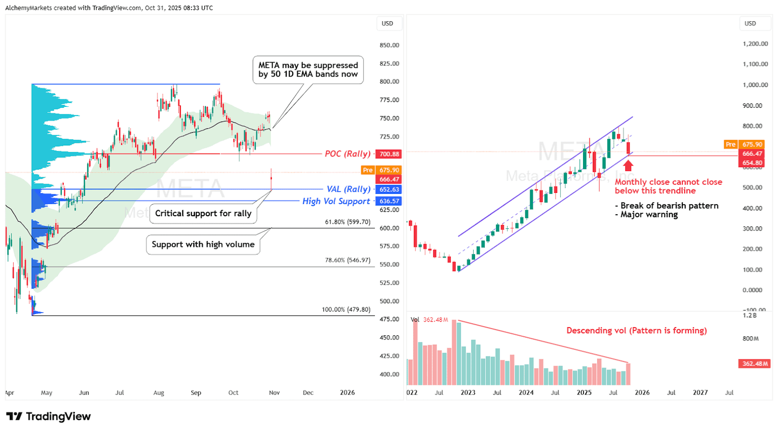 Technically, each of the MAG7 names that reported this week sits near critical levels — especially when viewed on monthly timeframes. The danger zones are clearly defined.