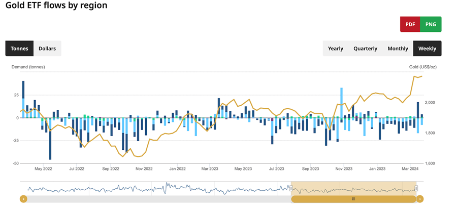 Over the last year, around 750 tons of gold have flowed out of ETFs globally. That dumped a large supply of gold into the marketplace.