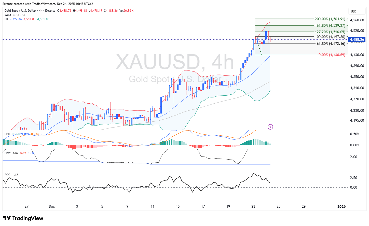 Gold ripping through $4,500 is the tell that this is not a clean growth party; it is a growth party with an insurance premium. The rally has been explicitly tied to haven demand from Venezuela-related tensions and to expectations of further Fed easing, with gold up roughly 70% this year and silver up about 150% (a 1979-style annual profile).