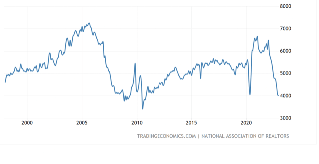 US Existing Home Sales are now lower than during the Covid lock-down period.