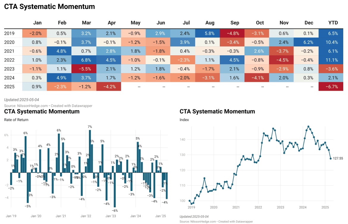 The main reason why the CTA industry is hurting so much is because of momentum traders getting savaged in April.