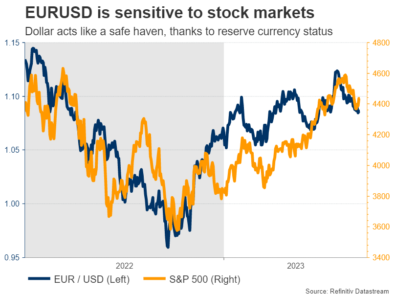 Beyond that, the stunning rally in stock markets this year has also bolstered the euro. Since the dollar tends to behave like a safe-haven nowadays, a more positive tone in risk assets also tends to benefit euro/dollar. This relationship is clearly visible on the chart above.