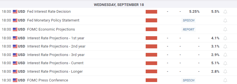 Main events related to the September’s Federal Reserve decision. Source: FXStreet