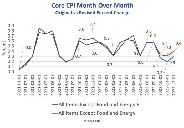 Each year with the release of the January CPI, seasonal adjustment factors are recalculated to reflect price movements from the just-completed calendar year. This routine annual recalculation may result in revisions to seasonally adjusted indexes for the previous 5 years. [And it did in spades] Recalculated seasonally adjusted indexes as well as recalculated seasonal adjustment factors for the period January 2018 through December 2022 were made available on Friday, February 10, 2023.
