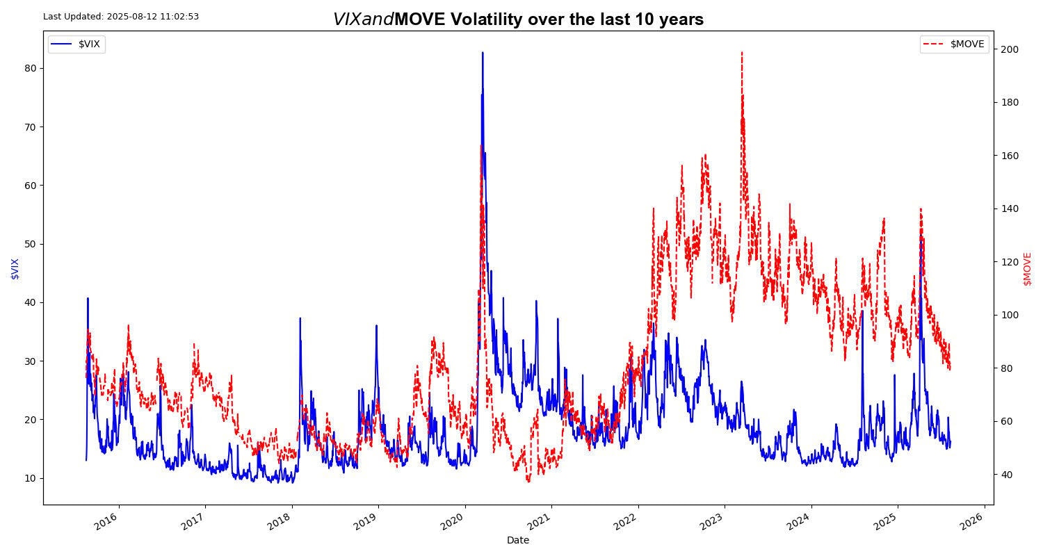 The chart below shows the Stock and Bond volatility indexes over the last 10 years.