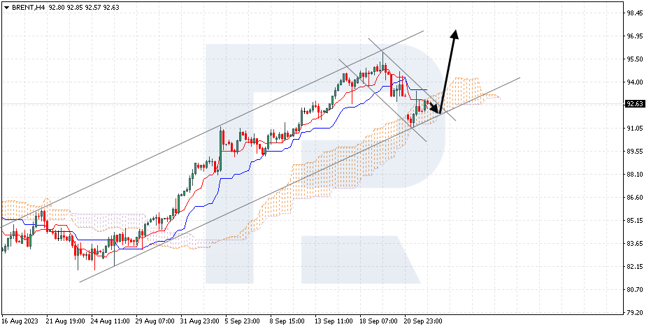Brent is correcting after a serious decline. The instrument is going inside the Ichimoku Cloud, which suggests a flat. A test of the lower boundary of the Cloud at 91.65 is expected, followed by a rise to 96.95. A signal confirming the decline will be a rebound from the lower boundary of the ascending channel. The scenario can be cancelled by a breakout of the lower boundary of the Cloud with the price securing under 90.65, which will mean a further decline to 85.05. Meanwhile, the growth could be confirmed by a breakout of the upper boundary of a bearish channel with the price securing above 94.55.