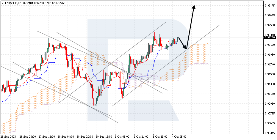 USDCHF is testing the resistance level. The instrument is going above the Ichimoku Cloud, which suggests an uptrend. A test of the upper boundary of the bullish channel at 0.9195 is expected, followed by a rise to 0.9285. An additional signal confirming the rise will be a rebound from the lower boundary of the bullish channel. The scenario can be cancelled by a breakout of the lower boundary of the Cloud with the price securing under 0.9125, which will mean a further decline to 0.9035.
