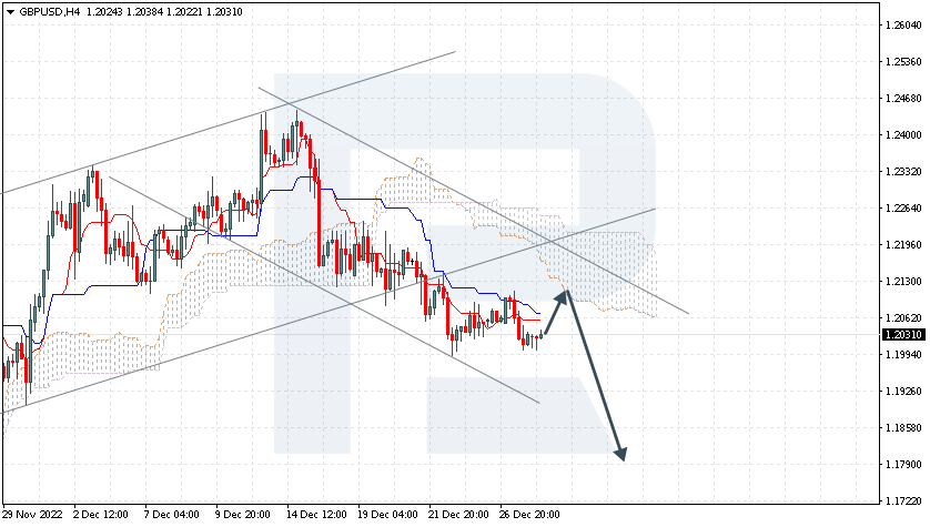 The currency pair is pushing off the support level. The pair is going under the Ichimoku Cloud, which indicates a downtrend. A test of the lower border of the Cloud is expected at 1.2070, followed by falling to 1.1785. An additional signal confirming the decline will be a bounce off the upper border of the descending channel. The scenario can be cancelled by a breakaway of the upper border of the Cloud and securing above 1.2265, which will indicate further growth to 1.2355.
