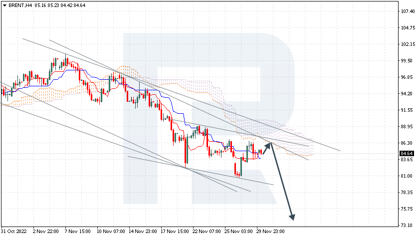 Oil is testing the signal lines of the indicator. The instrument is going below the Ichimoku Cloud, which suggests a downtrend. A test of the lower border of the Cloud at 86.05 is expected, followed by falling to 75.05. An additional signal confirming the decline will be a bounce off the upper border of the descending channel. The scenario can be cancelled by a breakaway of the upper border of the Cloud and securing above 93.05, which will mean further growth to 98.05.