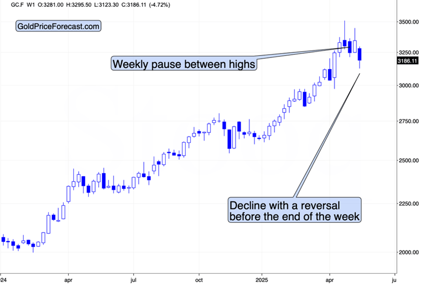 There was a weekly pause between the recent highs, and this week we see a weekly decline with a reversal.