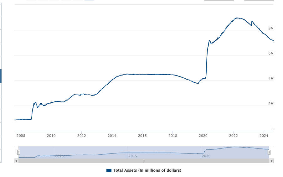 In the period between the onset of 2008 the financial crisis and the end of the pandemic, the Fed expanded the balance sheet by 889 percent.