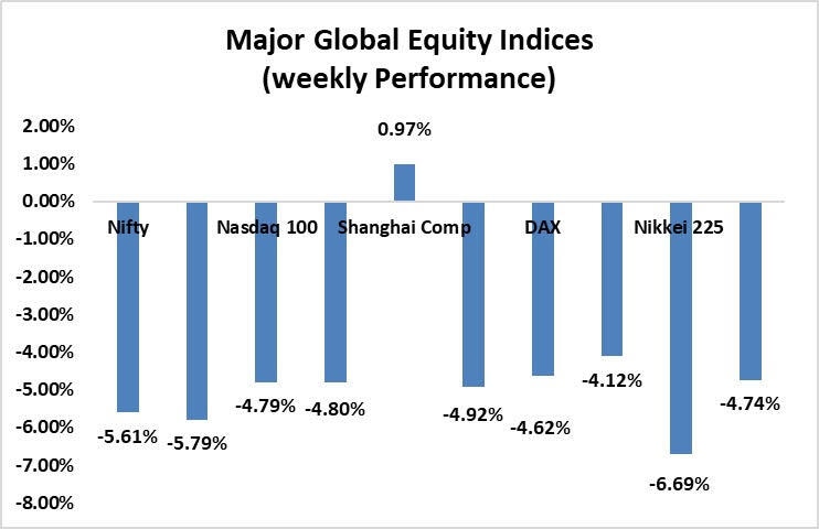 A cautious mood in most global markets amid growing worries about recession dented the sentiment on Dalal Street. During the week, both the domestic benchmark Sensex and Nifty 50 declined by around 5%. Mostly all major indices closed with a major cut including the Nifty Bank, consumer durable and IT stocks. Sensex ended volatile session of the week at 51,360, while the Nifty 50 closed the week at 15,293. After having closed this week on a negative note, Indian domestic equity benchmark indices are likely to trade with a downside bias next week as the aggressive monetary policy stance by the US Fed potentially triggered the fear of a recession.