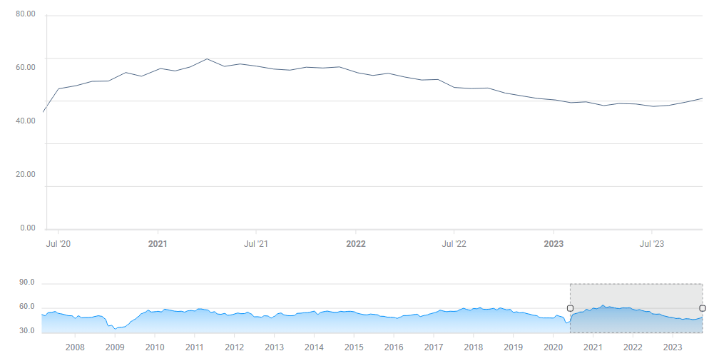 - Economists expect the ISM Manufacturing PMI to remain unchanged at 49 points in October.