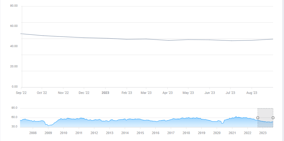 Economists expect only a minor increase from 47.6 to 47.8 for September. That may be too modest.