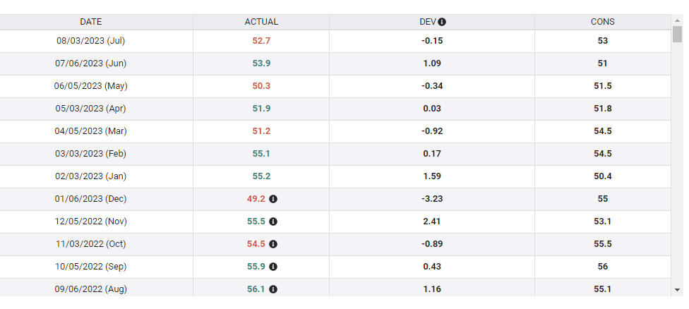 ISM Services PMI in the past year. Source: FXStreet.